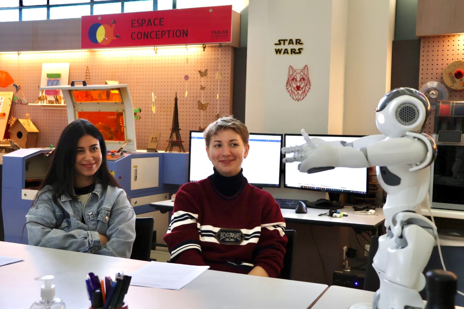 Les étudiants-chercheurs du Club Orion « Human Interact » visitent le Fablab, qui constitue un terrain de recherche privilégié sur le handicap et les technologies inclusives : 36 équipements numériques, dont les bénéfices thérapeutiques, pédagogiques et éducatifs sont multiples.